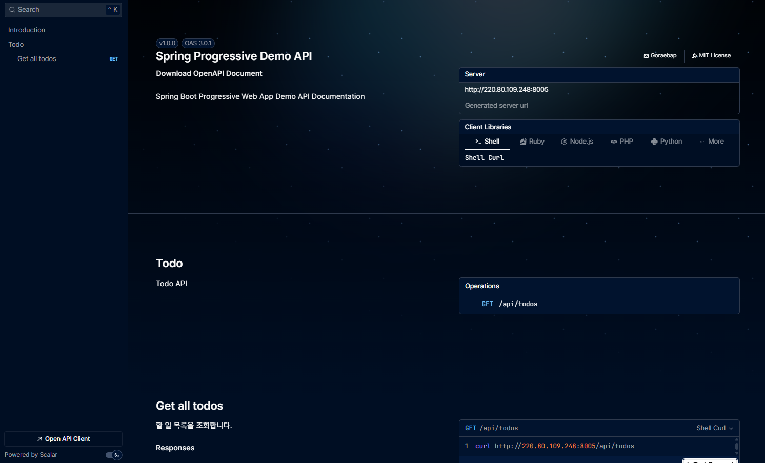 일단, 나는 Swagger를 붙이는 프로젝트면 항상 Scalar UI를 함께 사용하는데, Swagger UI보다 훨씬 모던하고 현대적이라 개인적으로 선호한다. 물론 필수는 아니지만 말이다.
